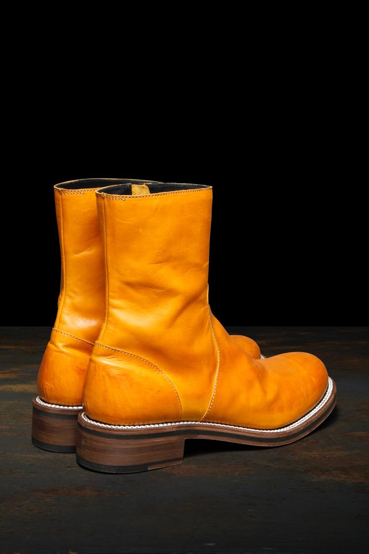 PRODUCT AUTUMN WINTER 2020 MARYAM HORSE VACHETTA SIDEZIP BOOTS No : 627_02_YEL Material : Rightside / Horse Vachetta Leather (馬革) Color : Yellow Size : 25H / 26 / 26H / 27 / 27H Price : ¥105,000 (Plus Tax) ONLINE STORE