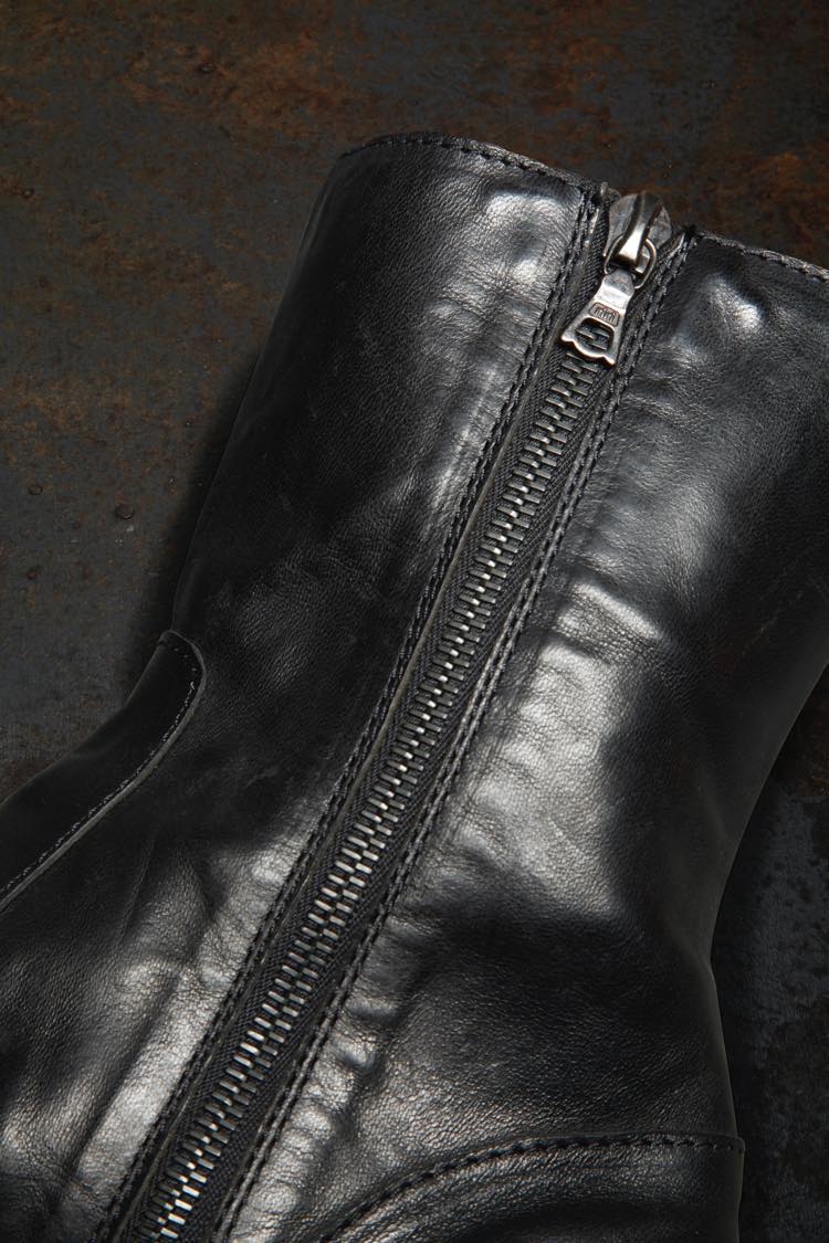 PRODUCT AUTUMN WINTER 2020 MARYAM HORSE VACHETTA SIDEZIP BOOTS No : 627_02_BLK Material : Rightside / Horse Vachetta Leather (馬革) Color : Black Size : 25H / 26 / 26H / 27 / 27H Price : ¥105,000 (Plus Tax) ONLINE STORE