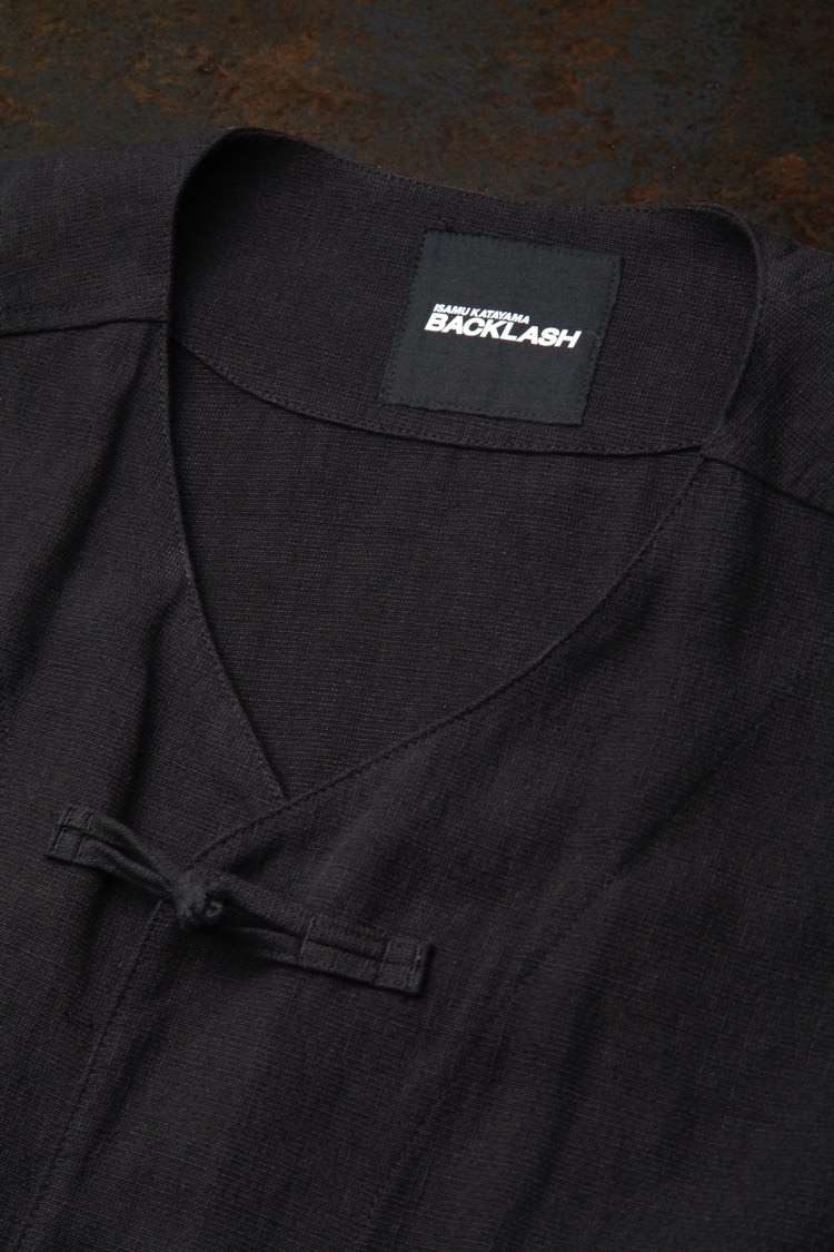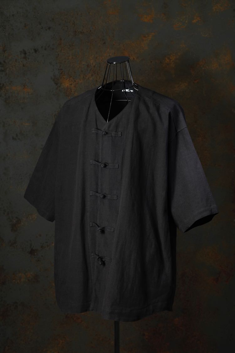 PRODUCT SPRING SUMMER 2021 NATURAL LINEN-COTTON KUNG FU JACKET No : 1933_02_BLK Material : Rightside / 74% Cotton , 26% Linen Color : Black Size : F Price : ¥40,000 (Plus Tax) ONLINE STORE
