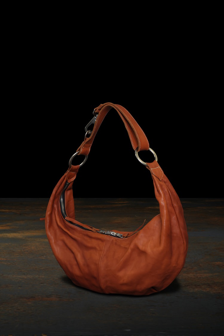 PRODUCT AUTUMN WINTER 2023 DOUBLE SHOULDER GARMENT-DYED SHOULDER BAG No : 92_10_BRN Material : Rightside / Japan Double Shoulder Leather (牛革) Color : Brown Size : F Price : ¥76,000 (Plus Tax) ONLINE STORE
