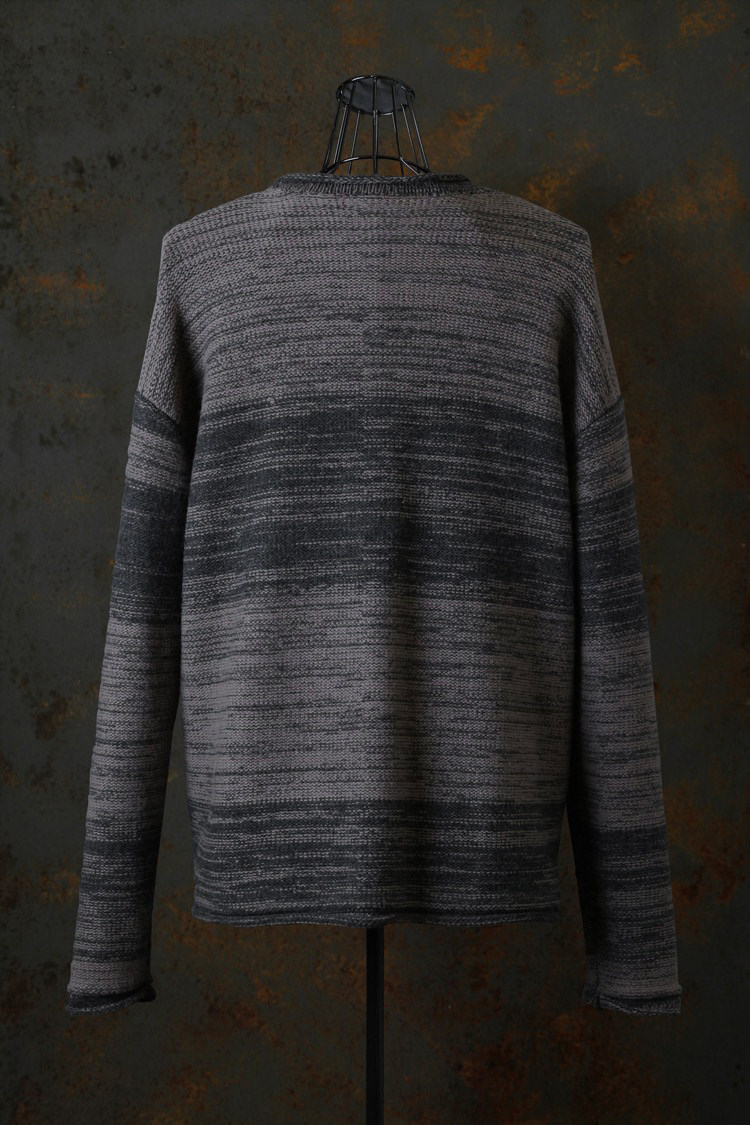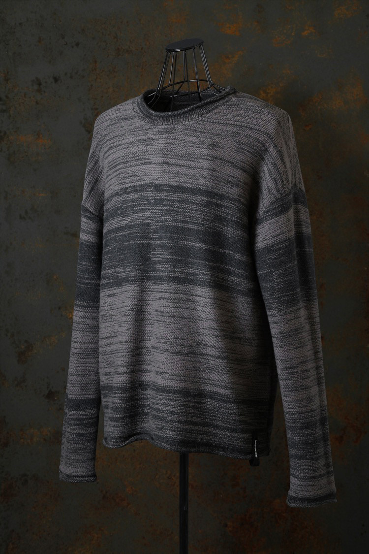 PRODUCT AUTUMN WINTER 2023 HORIZON WOOL KNIT PULLOVER No : KN_776_01_BLKM Material : Rightside / 100% Wool Color : Black.Mix Size : S / M / L Price : ¥49,000 (Plus Tax) ONLINE STORE