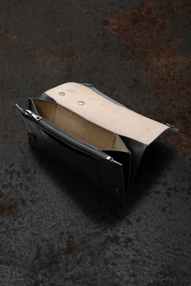 PRODUCT AUTUMN WINTER 2025 HORWEEN CHROMEXCEL TRUCKER WALLET No : 894_04_BLK Material : Rightside / Horween Chromexcel Steerhide (牛革) Color : Black Size : F Price : ¥55,000 (Plus Tax) ONLINE STORE