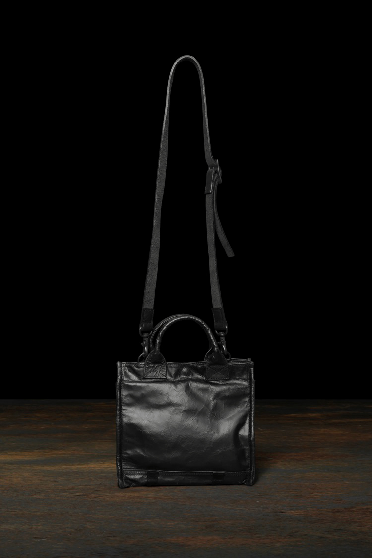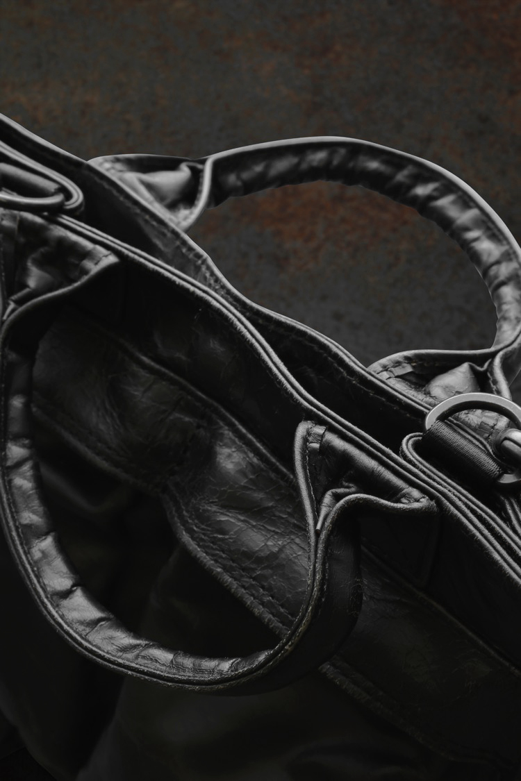 PRODUCT AUTUMN WINTER 2025 JAPAN HORSE CRACKING VINTAGE TOTE/SHOULDER BAG No : 260_01_BLK Material : Rightside / Japanese Horse Leather (馬革) Color : Black Size : F Price : ¥85,000 (Plus Tax) ONLINE STORE