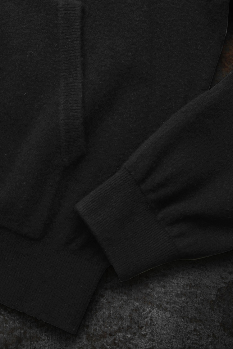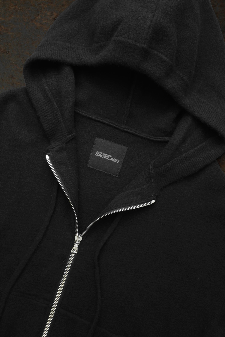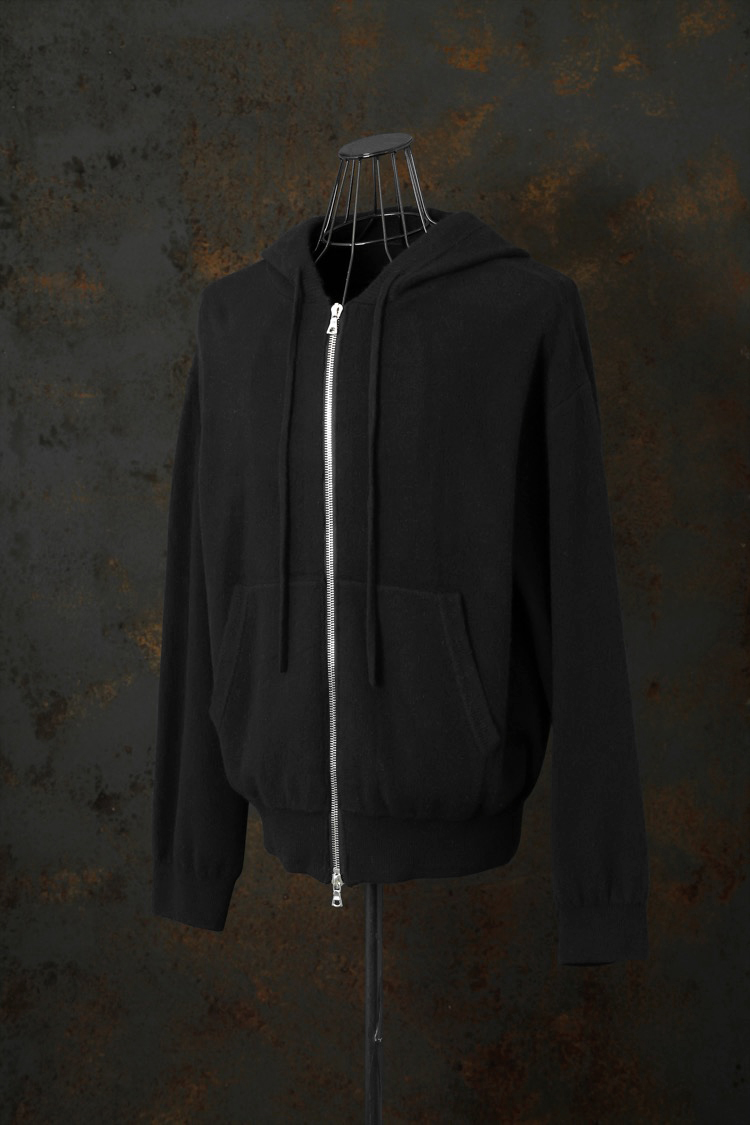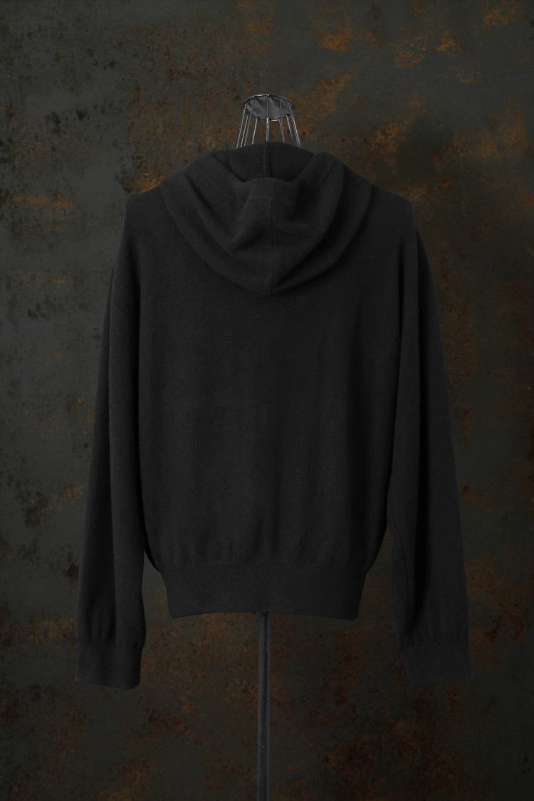 PRODUCT AUTUMN WINTER 2025 SHRUNK 100% CASHMERE KNIT ZIP-UP HOODIE No : KN_783_02_BLK Material : Rightside / 100% Cashmere (カシミヤ) Color : Black Size : S Price : ¥240,000 (Plus Tax) ONLINE STORE