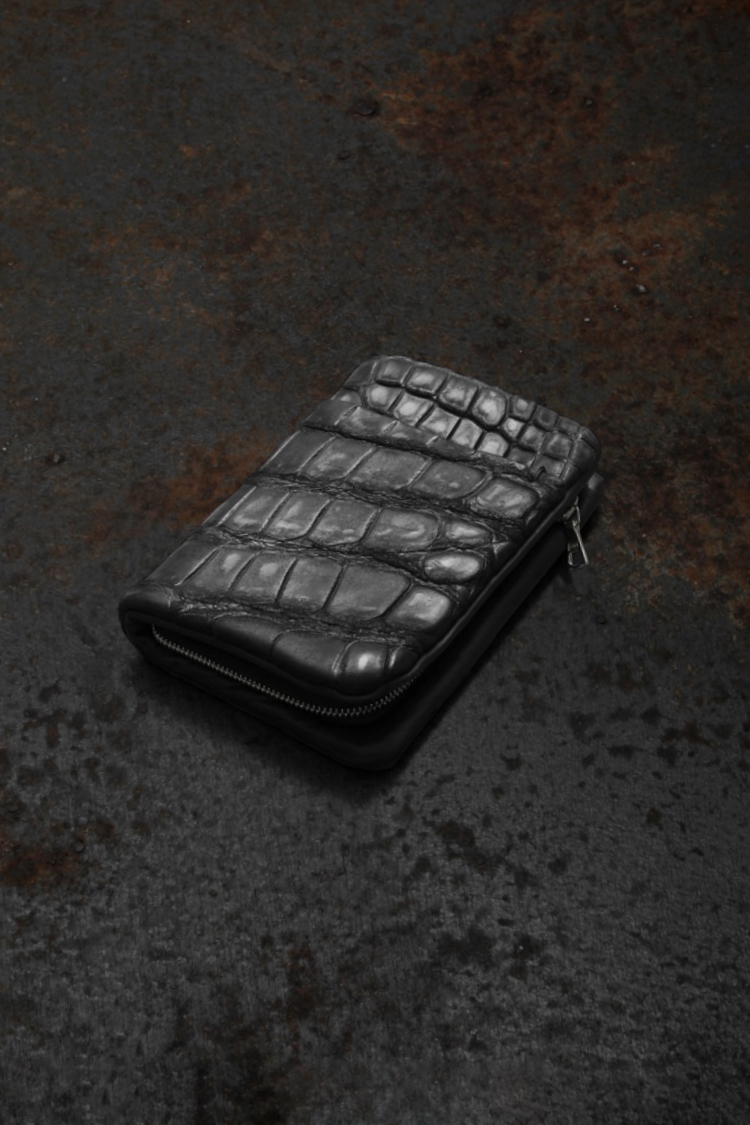 PRODUCT SPRING SUMMER 2026 CROCODILE FRENCH SEAM COMPACT MULTIWALLET No : 383_10_BLK Material : Rightside / Crocodile Leather (鰐革) Inside / Guidi Calf Leather (仔牛革) Color : Black Size : F Price : ¥130,000 (Plus Tax) ONLINE STORE