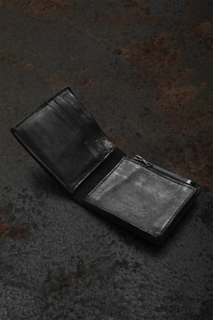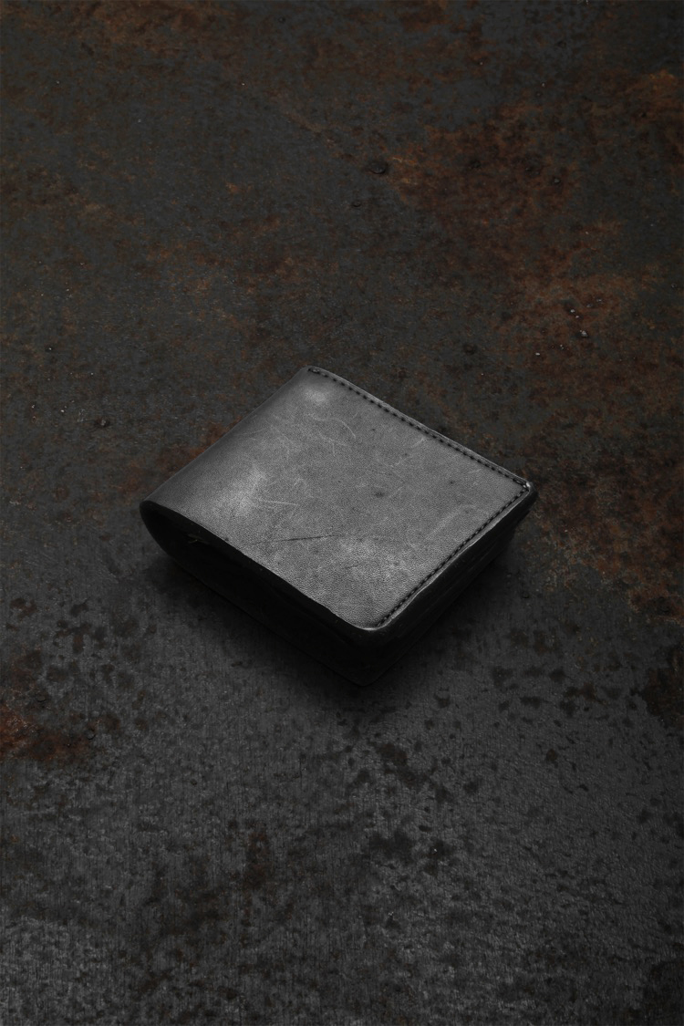 PRODUCT SPRING SUMMER 2026 JP SHOULDER GARMENT-DYED MINI WALLET No : 318_39_BLK Material : Rightside / Japan Double Shoulder Leather (牛革) Color : Black Size : F Price : ¥38,000 (Plus Tax) ONLINE STORE