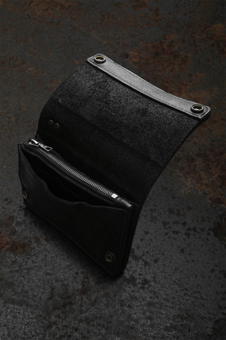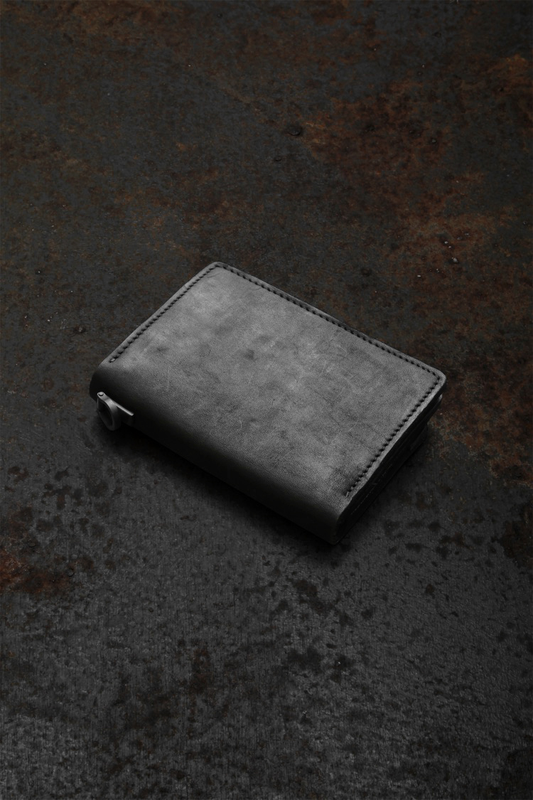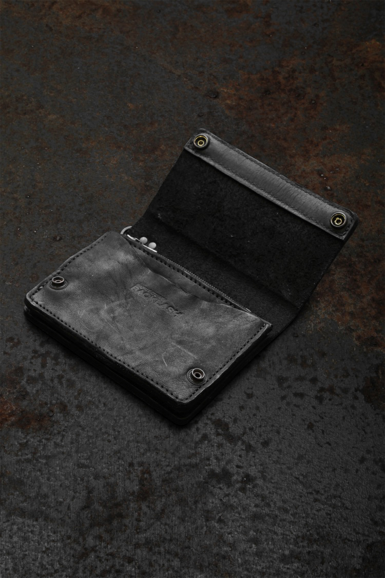 PRODUCT SPRING SUMMER 2026 JP SHOULDER GARMENT-DYED MINI TRUCKER WALLET No : 318_37_BLK Material : Rightside / Japan Double Shoulder Leather (牛革) Color : Black Size : F Price : ¥40,000 (Plus Tax) ONLINE STORE