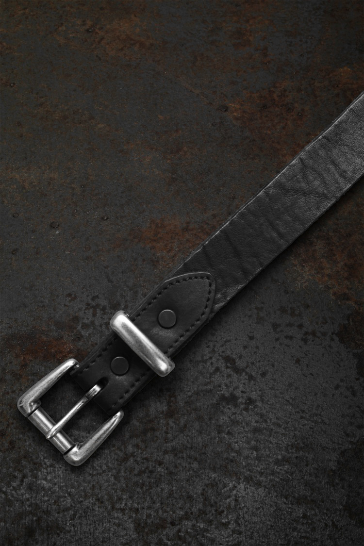 PRODUCT SPRING SUMMER 2026 JP SHOULDER GARMENT-DYED ROLLER-BUCKLE BELT【30mm】 No : 318_41_BLK Material : Rightside / Japan Double Shoulder Leather (牛革) Color : Black Size : F Price : ¥20,000 (Plus Tax) ONLINE STORE