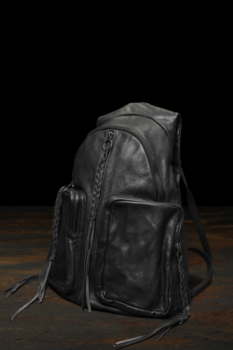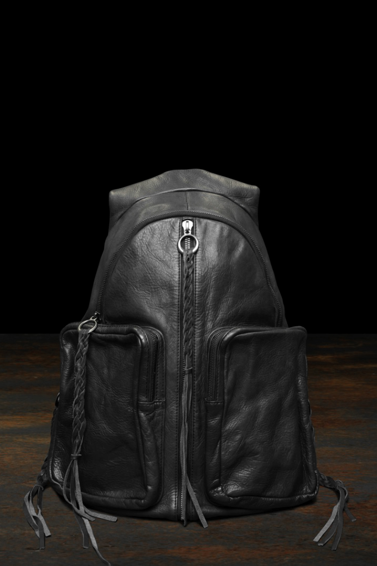 PRODUCT SPRING SUMMER 2026 JAPAN STEER MIMOSA/TANNED GARMENT-WASH BACKPACK No : 262_03 Material : Rightside / Japan Steer Leather (牛革) Color : Black Size : F Price : ¥200,000 (Plus Tax) ONLINE STORE