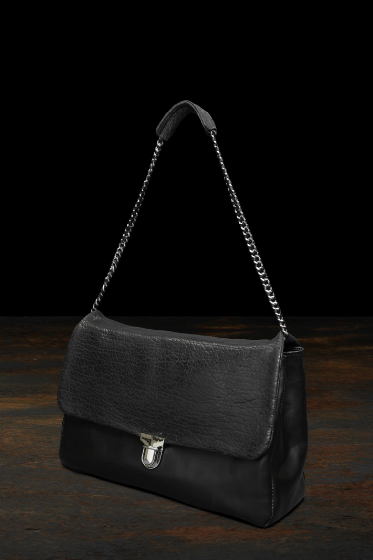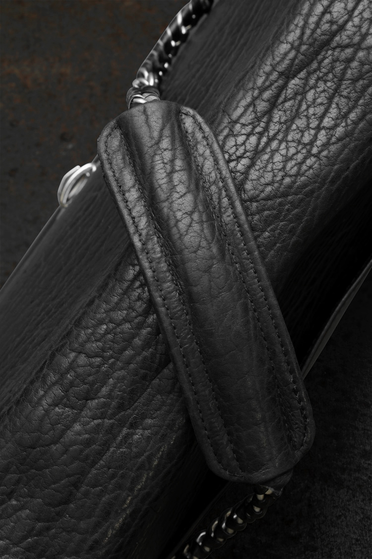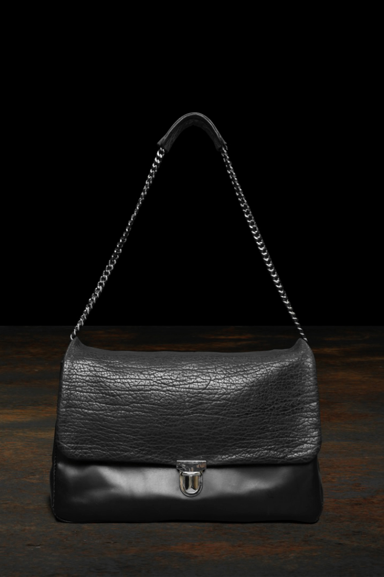 PRODUCT SPRING SUMMER 2026 SEAL SKIN + JP STEER BIG CHAIN BAG No : 261_01 Material : Rightside / Sealskin (オットセイ革) , Japan Steer Leather (牛革) Color : Black Size : F Price : ¥180,000 (Plus Tax) ONLINE STORE