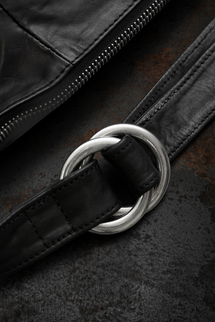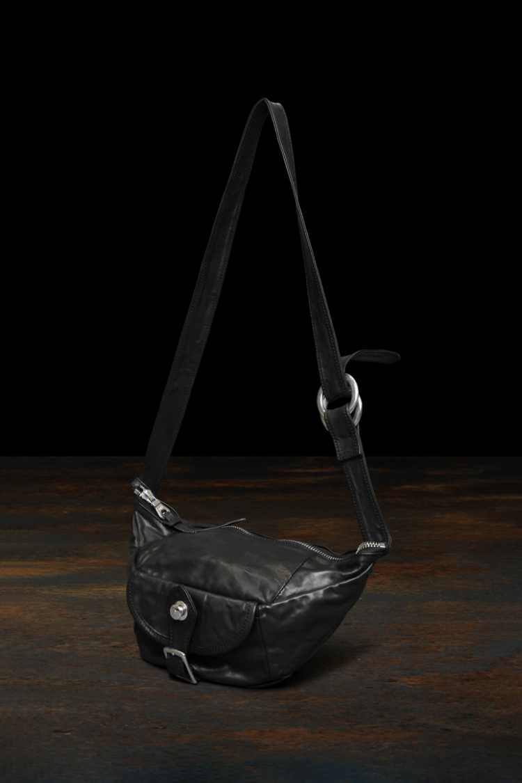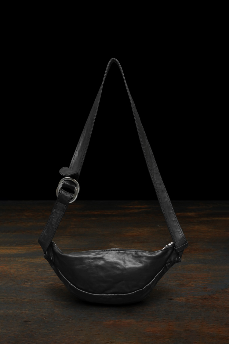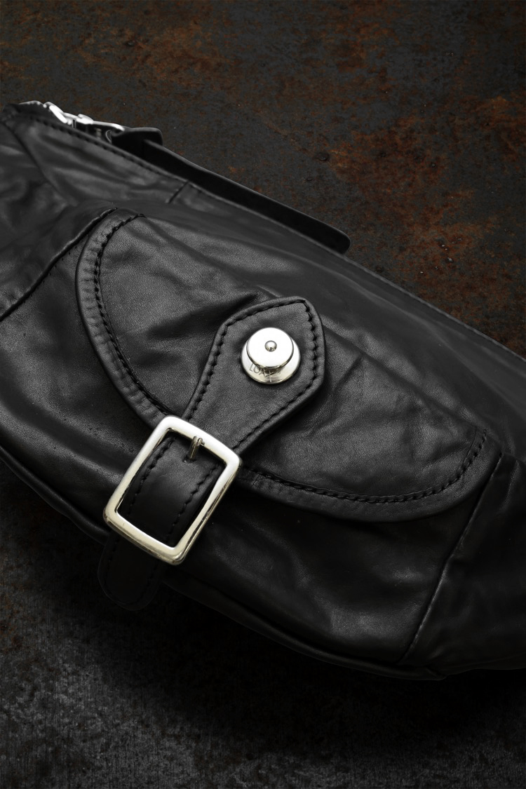 PRODUCT SPRING SUMMER 2026 ITALY SHOULDER GARMENT-DYED WAIST/BODY BAG No : 243_04 Material : Rightside / Italy Double Shoulder Leather (牛革) Color : Black Size : F Price : ¥70,000 (Plus Tax) ONLINE STORE