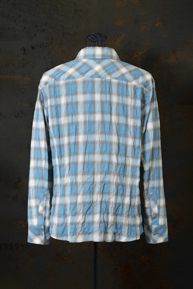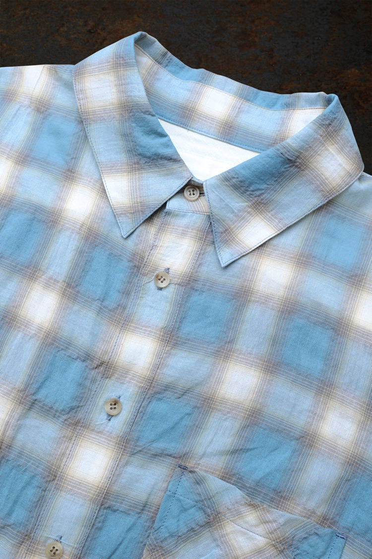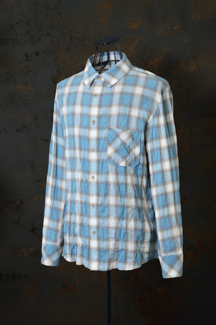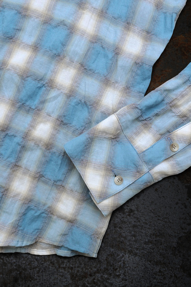 PRODUCT SPRING SUMMER 2026 DAPPLED SUNLIGHT OMBRE CHECK SHIRT No : 2201_01_BLU Material : Rightside / 99% Cotton , 1% Polyurethane Color : Blue Size : M / L / XL Price : ¥36,000 (Plus Tax) ONLINE STORE