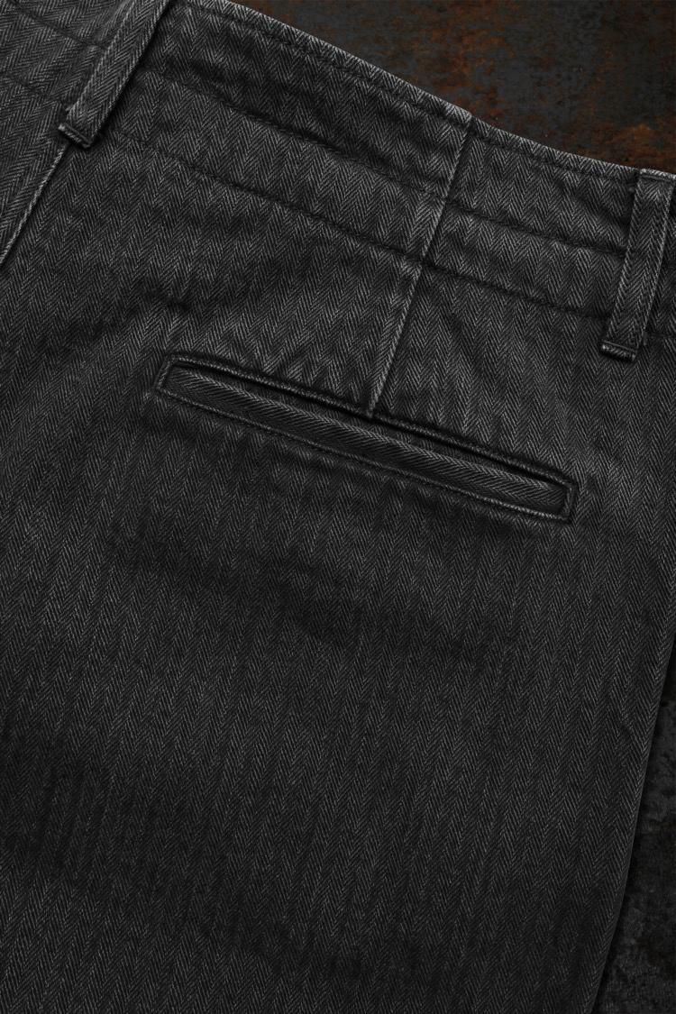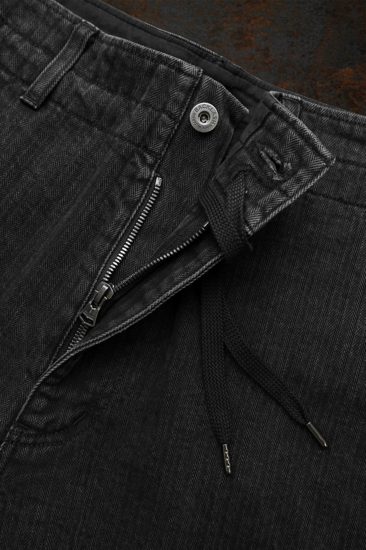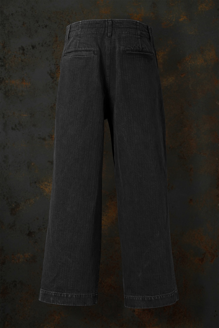 PRODUCT SPRING SUMMER 2026 BLACK HERRINGBONE STONE BIO WASH WIDE PANTS No : 2199_02 Material : Rightside / 100% Cotton Color : Black Size : S / M / L Price : ¥65,000 (Plus Tax) ONLINE STORE