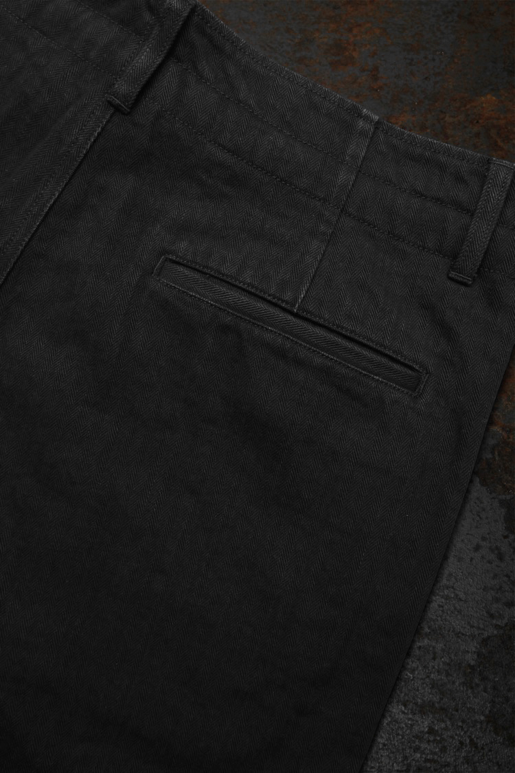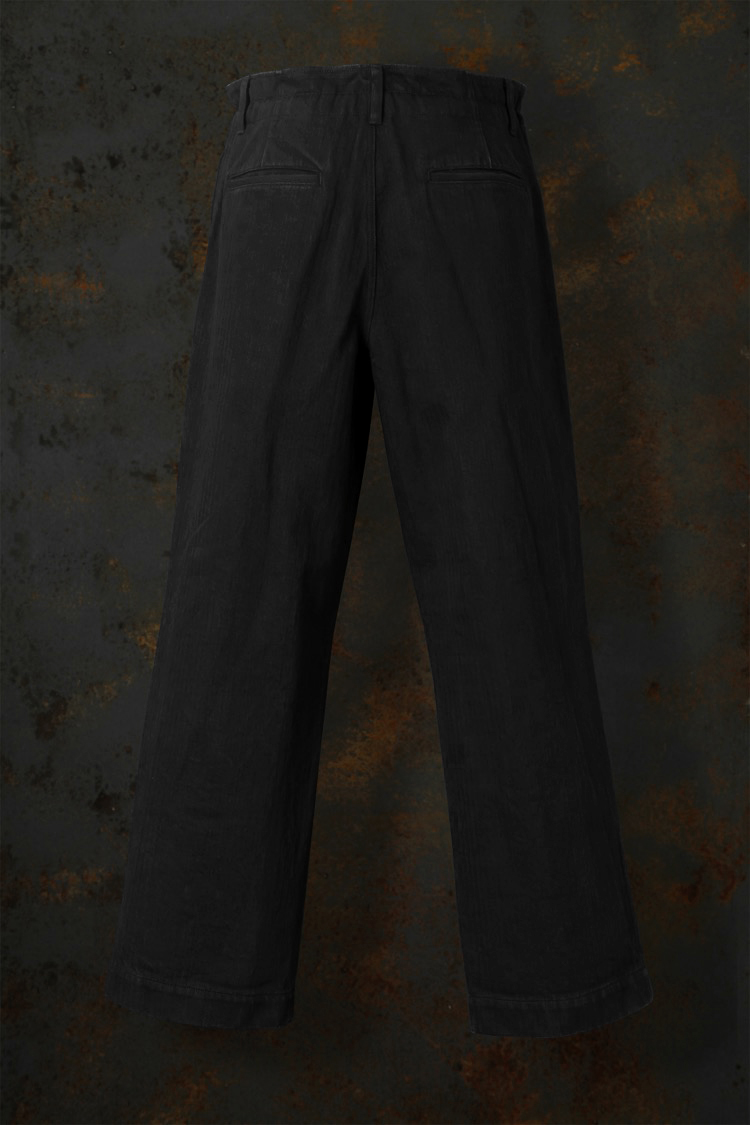 PRODUCT SPRING SUMMER 2026 BLACK HERRINGBONE ONE WASH WIDE PANTS No : 2199_01 Material : Rightside / 100% Cotton Color : Black Size : S / M / L Price : ¥60,000 (Plus Tax) ONLINE STORE