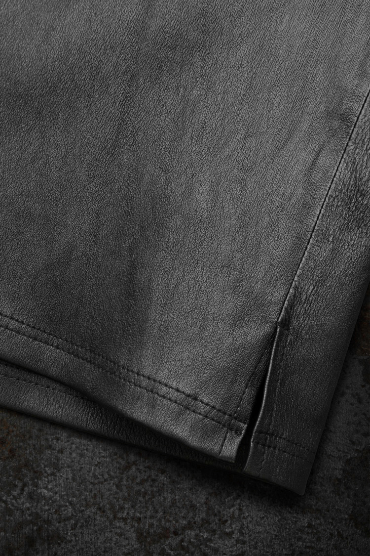 PRODUCT SPRING SUMMER 2026 STRETCH DEERSKIN SKIPPER SHIRT No : 2194_02 Material : Rightside / Deerskin (鹿革) Color : Black Size : L Price : ¥140,000 (Plus Tax) ONLINE STORE