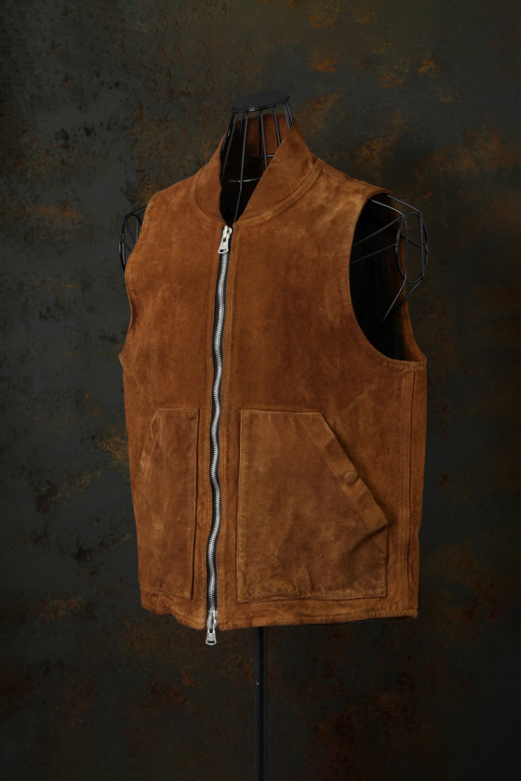 - JAPAN STEER VELOR SUEDE COMBINATION TANNED “GARMENT-DYED” VEST