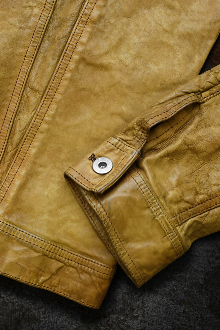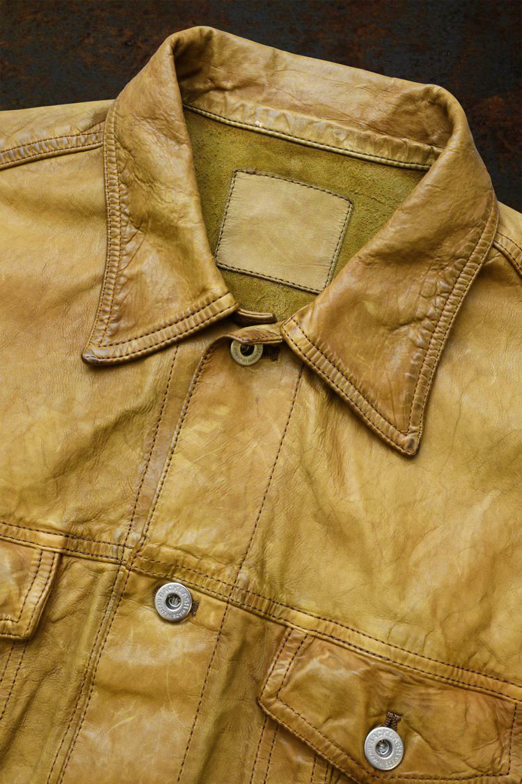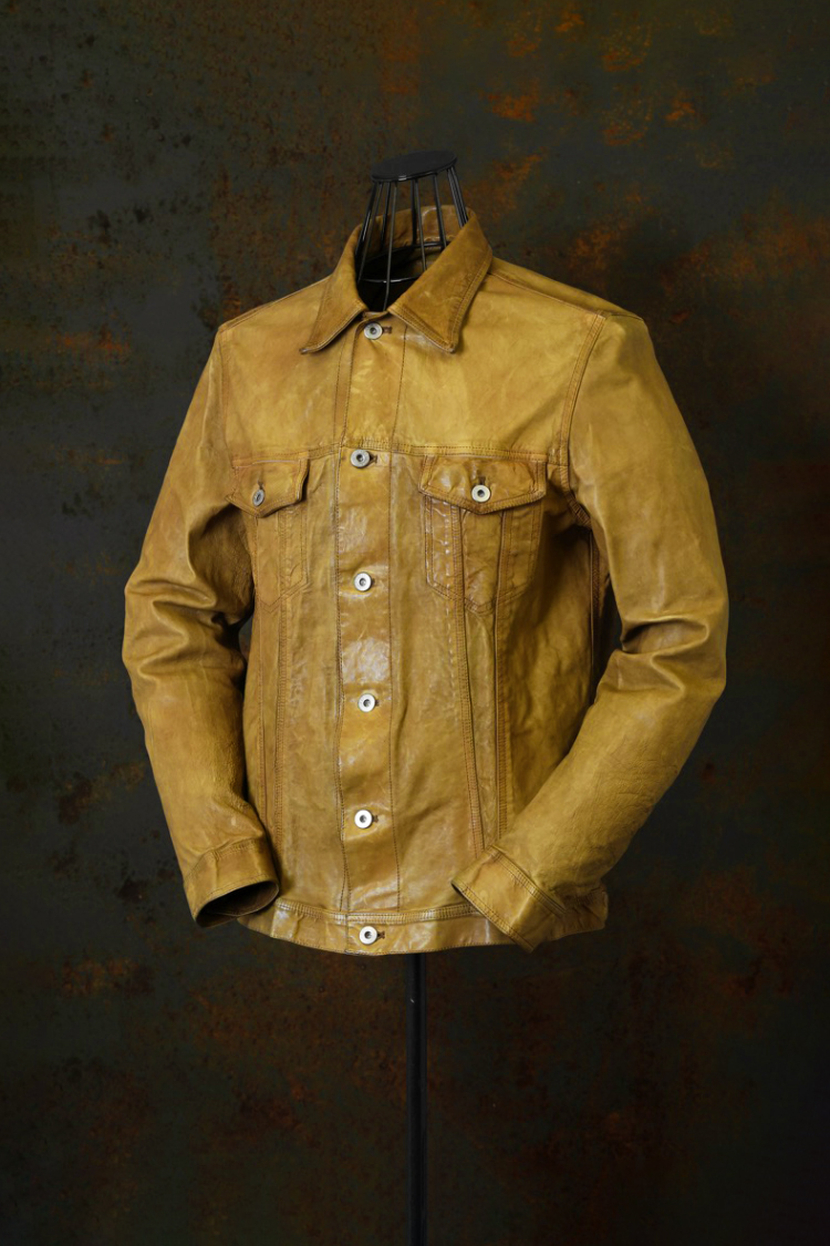 PRODUCT SPRING SUMMER 2026 JAPAN CALF WET WHITE “GARMENT-LOGWOOD-DYED” 3RD.TYPE JACKET No : 2146_02_BRN Material : Rightside / Japan Calf Leather (仔牛革) Color : Brown Size : M / L / XL Price : ¥230,000 (Plus Tax) ONLINE STORE
