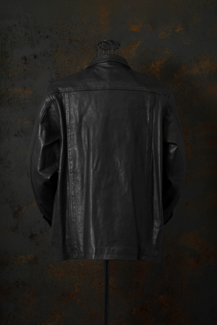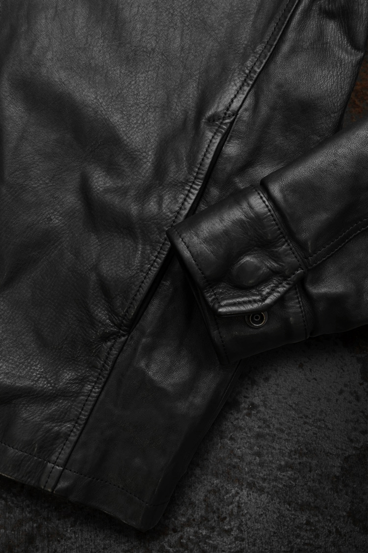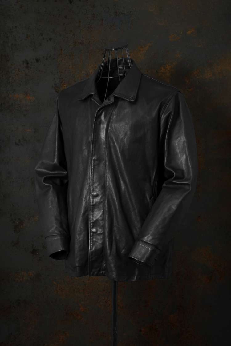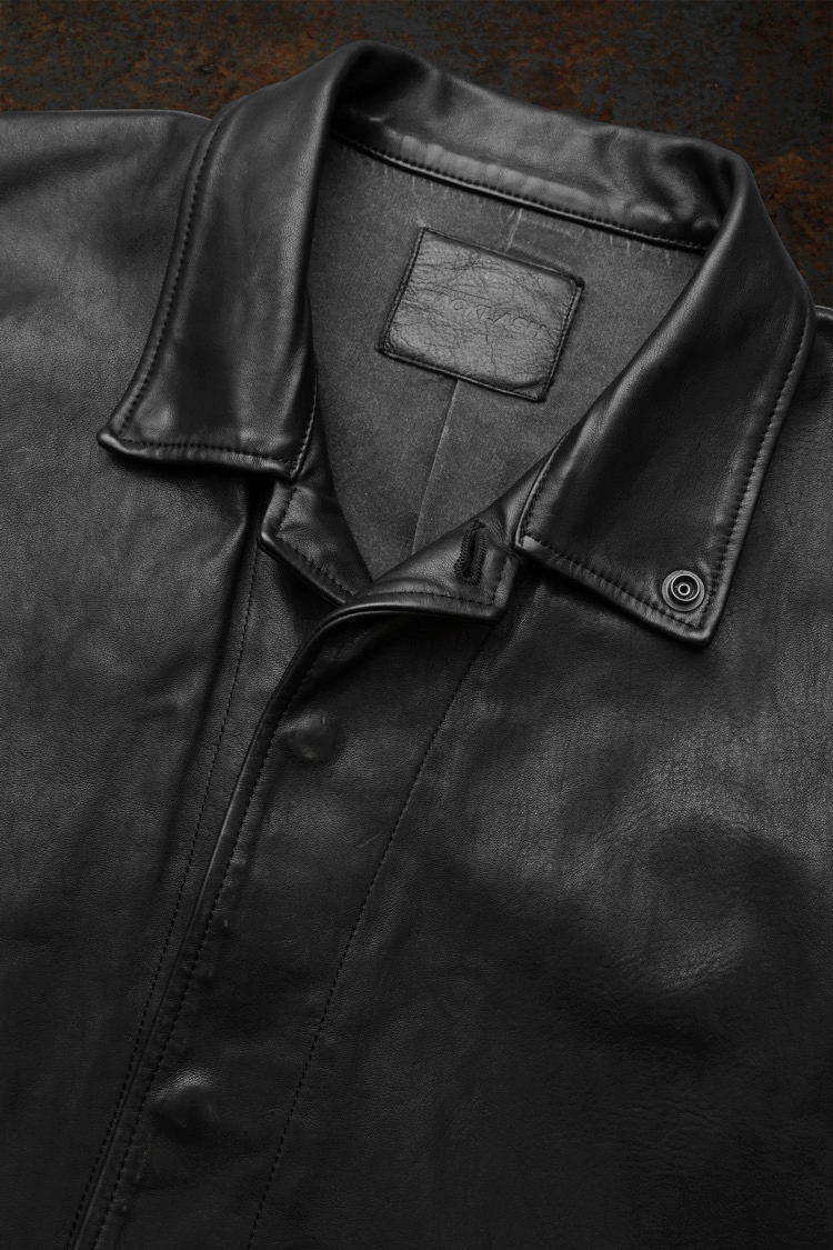 PRODUCT SPRING SUMMER 2026 JAPAN HORSE OIL WAX FINISH “GARMENT-WASH” SHIRT No : 2188_01 Material : Rightside / Japan Horse Leather (馬革) Lining / 100% Rayon Color : Black Size : L / XL / XXL Price : ¥210,000 (Plus Tax) ONLINE STORE