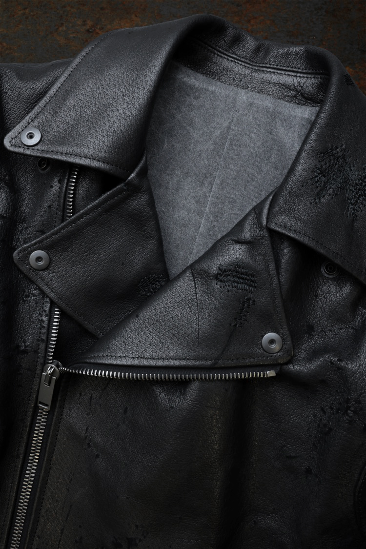 PRODUCT SPRING SUMMER 2026 WILD BOAR “STITCHWORK” DOUBLE RIDERS No : 2187_02 Material : Rightside / Boar Leather (猪革) Lining / 100% Rayon Color : Black Size : M / L / XL Price : ¥300,000 (Plus Tax) ONLINE STORE