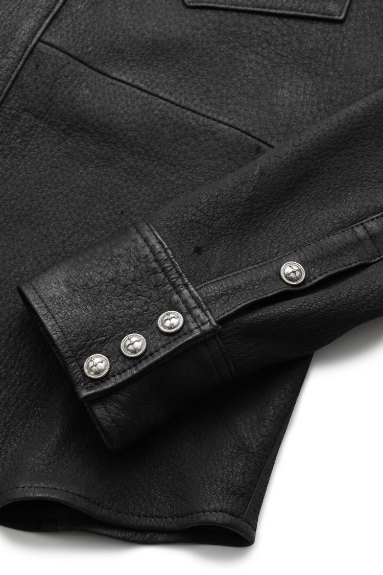 PRODUCT ORDER MADE PECCARY SHIRT No : T_261 Material : Rightside / Peccary Leather Lining / Unlined , Charge Up Kangaroo Suede Leather or 100% Cupra Parts / Silver 925 Color : Black Size : Ask Price : ¥650,000〜 (Plus Tax) CONTACT US