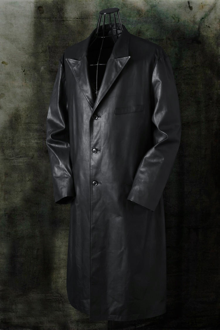 - XX Yohji Yamamoto MONOCHROME LUXURY STEER “GARMENT-WASH” DOUBLE LAYERED PEAK LAPEL LONG JACKET