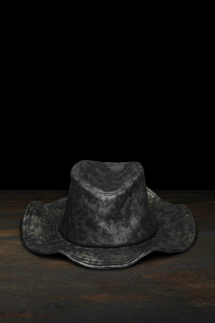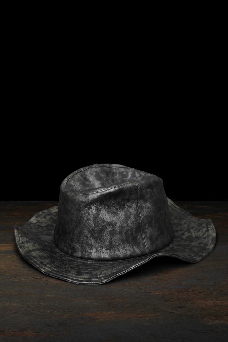 - XX Yohji Yamamoto SHEEP LEATHER LEOPARD PEARL FOIL PRINT TENGALLON HAT