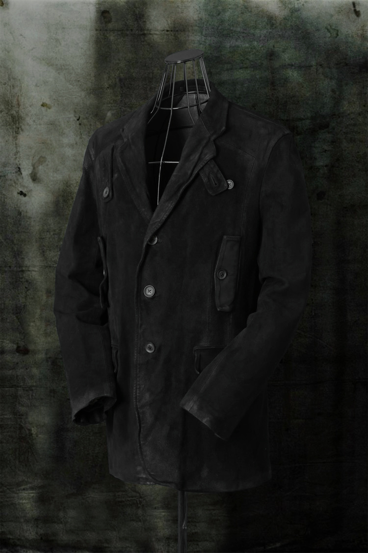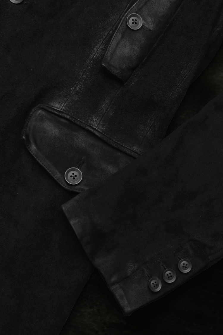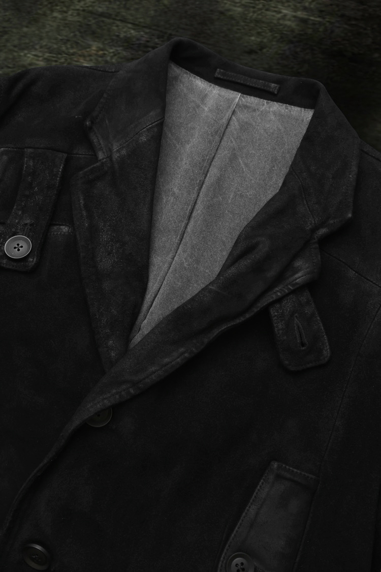 - XX Yohji Yamamoto JAPAN HORSE SUEDE “GARMENT-WASH” HAND-WAX TAB PANELED JACKET
